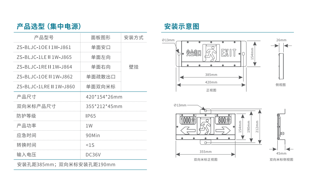 軌道交通-單面疏散出口應(yīng)急標志燈 | ZS-BLJC-1REⅡ1W-J864 | 壁掛